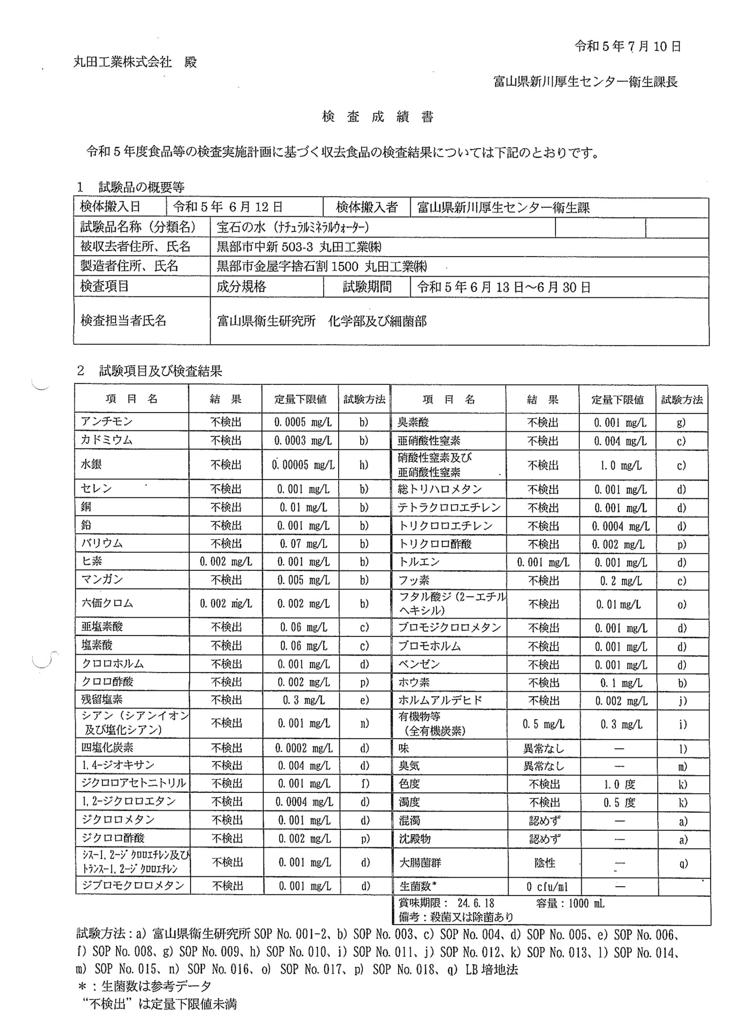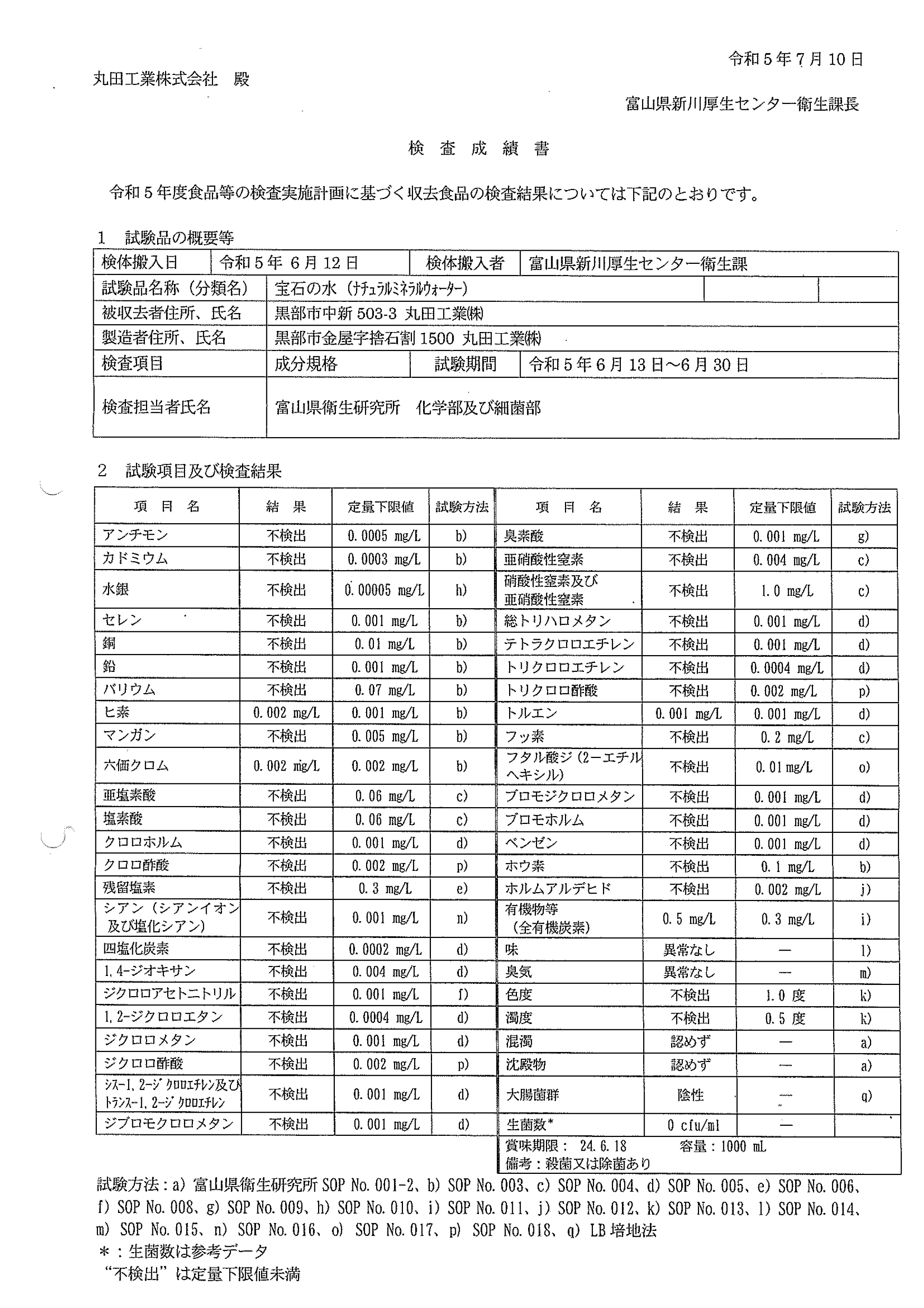 丸田の天然水のpH値は、そのままで約pH7.5。