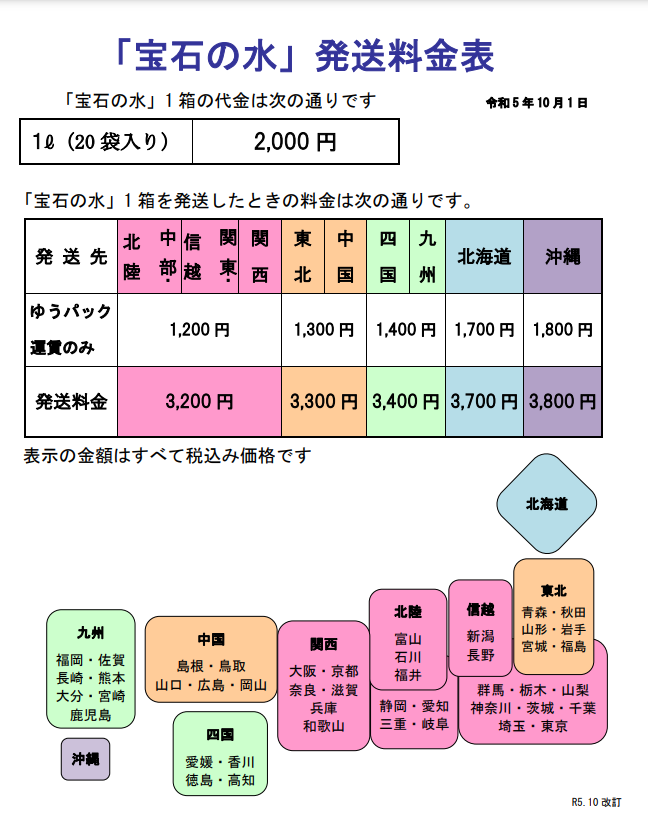 | 北海道地方 | 北海道 | 2190円 |