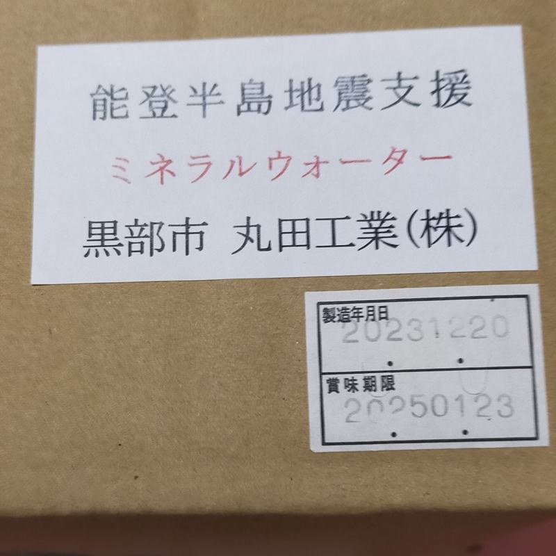 丸田工業では、被災者支援策として、弊社製造 黒部の天然水宝石の水(飲料水)を提供させていただきました。